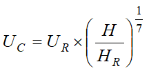 The reference elevation at which the current velocity is being specified. The power law profile is governed by the following relationship: where UC is the current velocity at elevation H, HR is the reference elevation and UR is the current velocity at the reference elevation. The current direction is constant throughout the water depth. Units: [m] or [ft] |