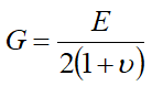 The Shear Modulus (G) of the material. This input is optional. The specification of Shear Modulus (G) is optional and, if omitted, is computed internally by PipeLay using the following relationship: where E is Young’s Modulus and ν is Poisson’s Ratio. Note that either G or ν must be a user-specified input. Units: [GPa] or [ksi] |