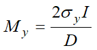 where A = Ramberg-Osgood coefficient, B = Ramberg-Osgood exponent, K = Pipe curvature, Ky = Pipe curvature at yield stress, M = Pipe bending moment, My = Pipe bending moment at yield stress, E = Young’s Modulus of the pipe, D = External diameter of the pipe, I = Moment of inertia of the pipe, and σy = Yield stress of the pipe. |