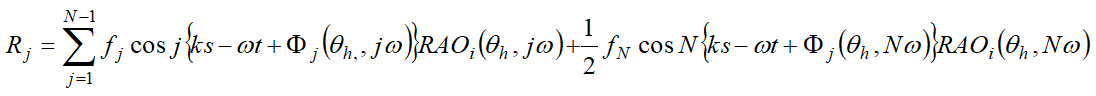 With this option, the vessel response is a summation of N components, which correspond to the “components” in the expression for water surface elevation in Equation (TN.6.2). RAO values and phase angles corresponding to each component in Equation (TN.6.2) are extracted from the user-specified data in the usual way, and the vessel response is found by summing over the N terms in a similar manner as would be used in a random sea. Obviously for this exercise to be meaningful RAOs and phase angles must be defined over the full range of circular frequencies from ω to Nω.